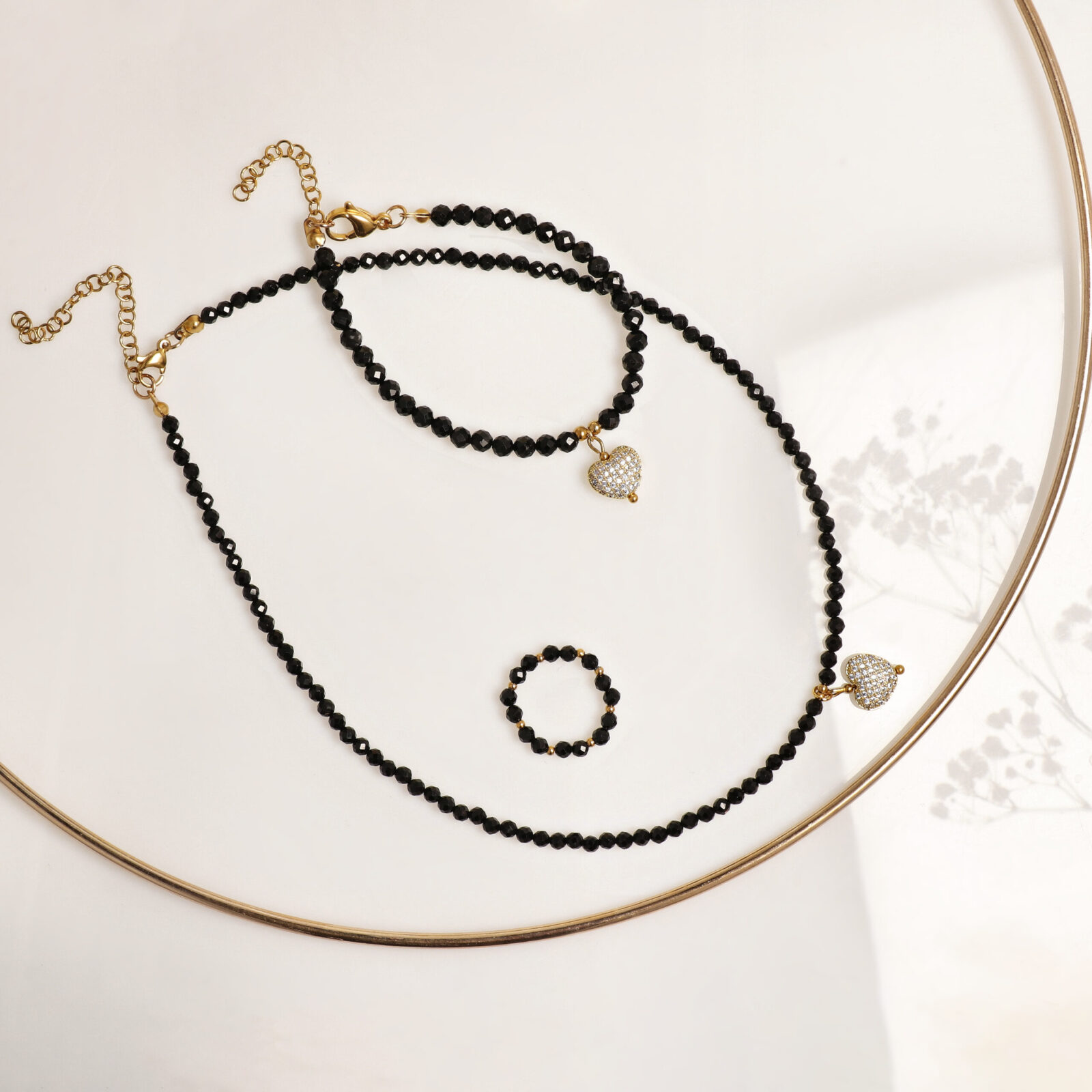 Zestaw pierścionek, bransoletka, naszyjnik z kamieni: