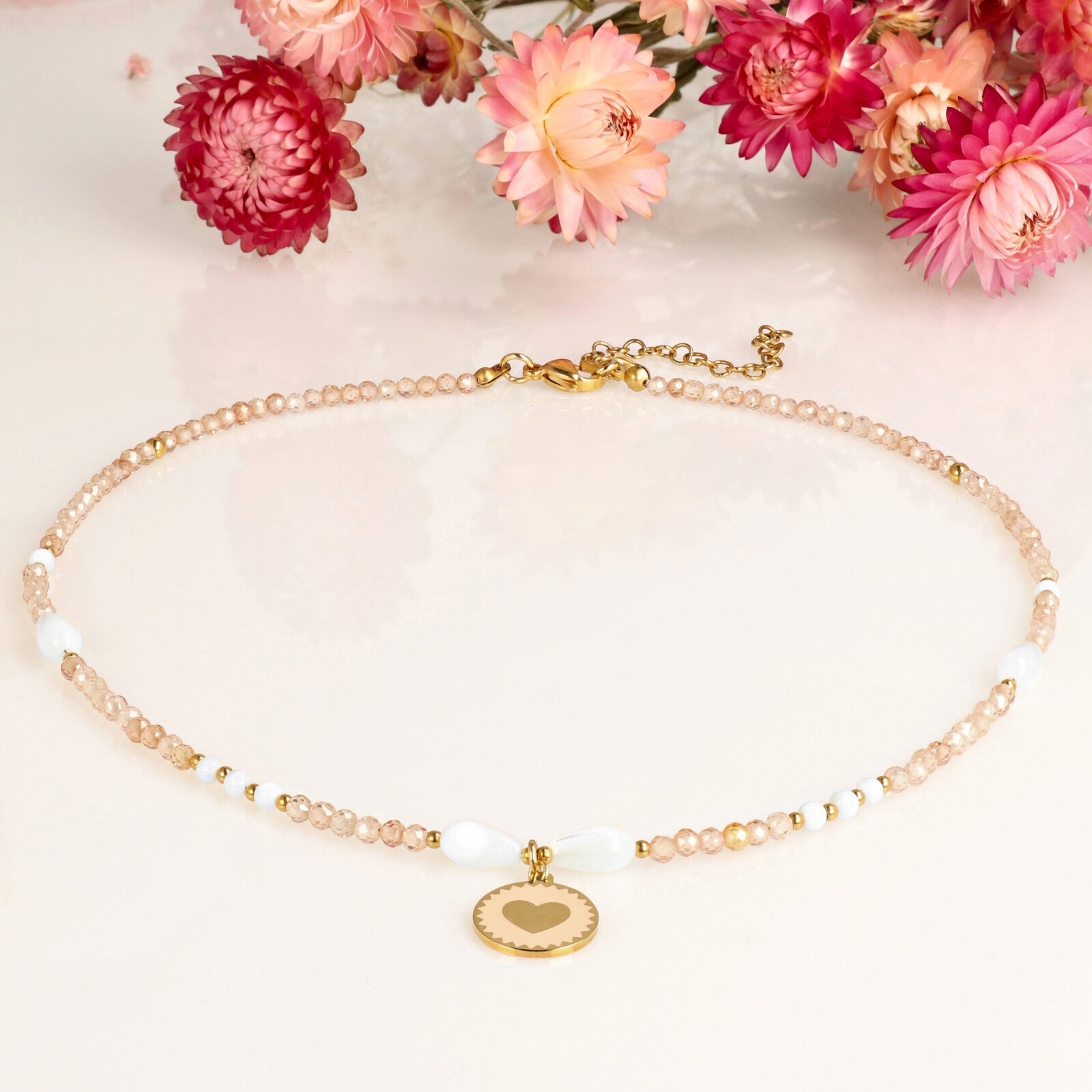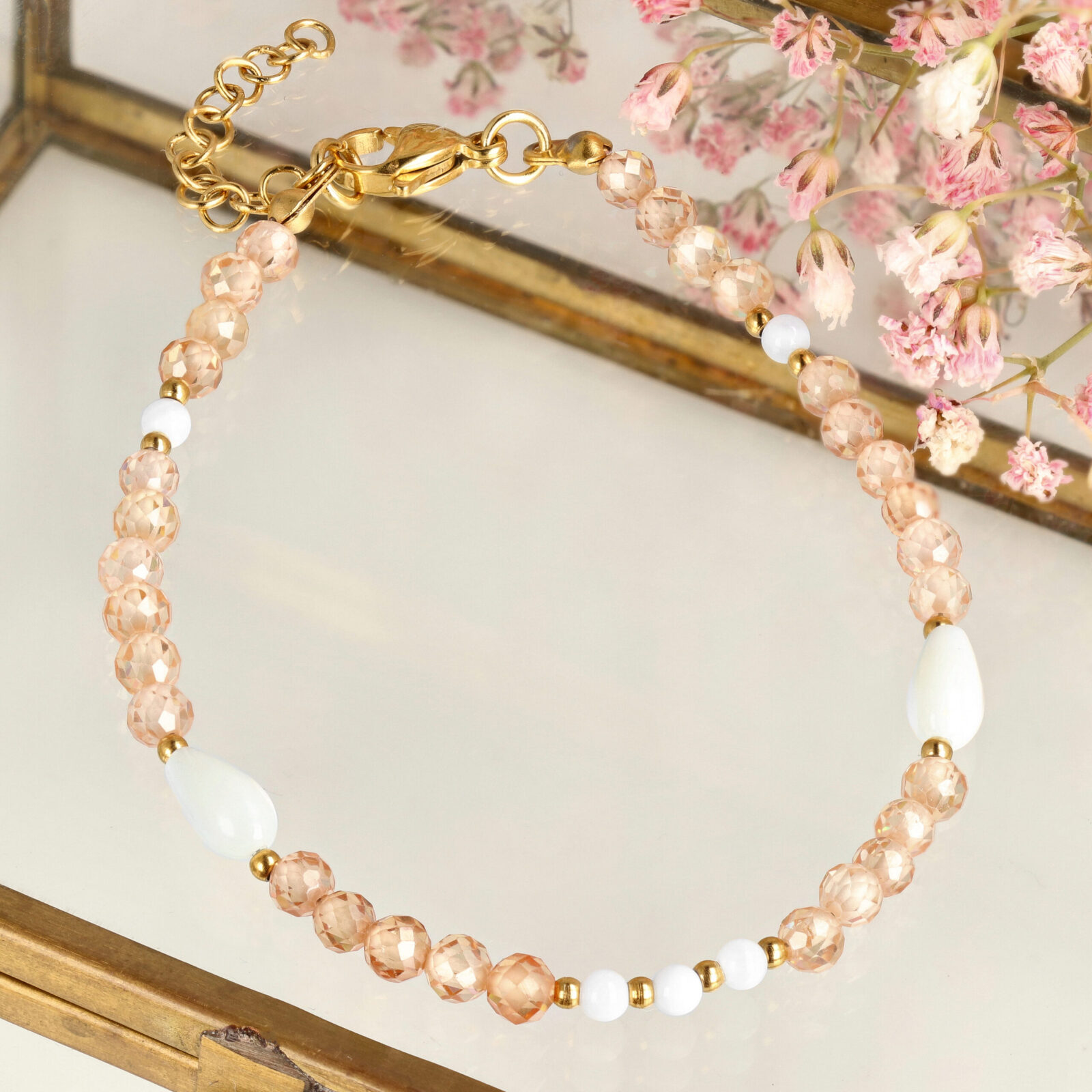 Nasze produkty tworzymy ręcznie z naturalnych kamieni: szlachetnych, półszlachetnych i mineralnych, a elementy wykończenia wykonane są z wysokiej jakości pozłacanej stali szlachetnej, która jest hipoalergiczna, odporna na ścieranie i zachowuje swój kolor w trakcie użytkowania.