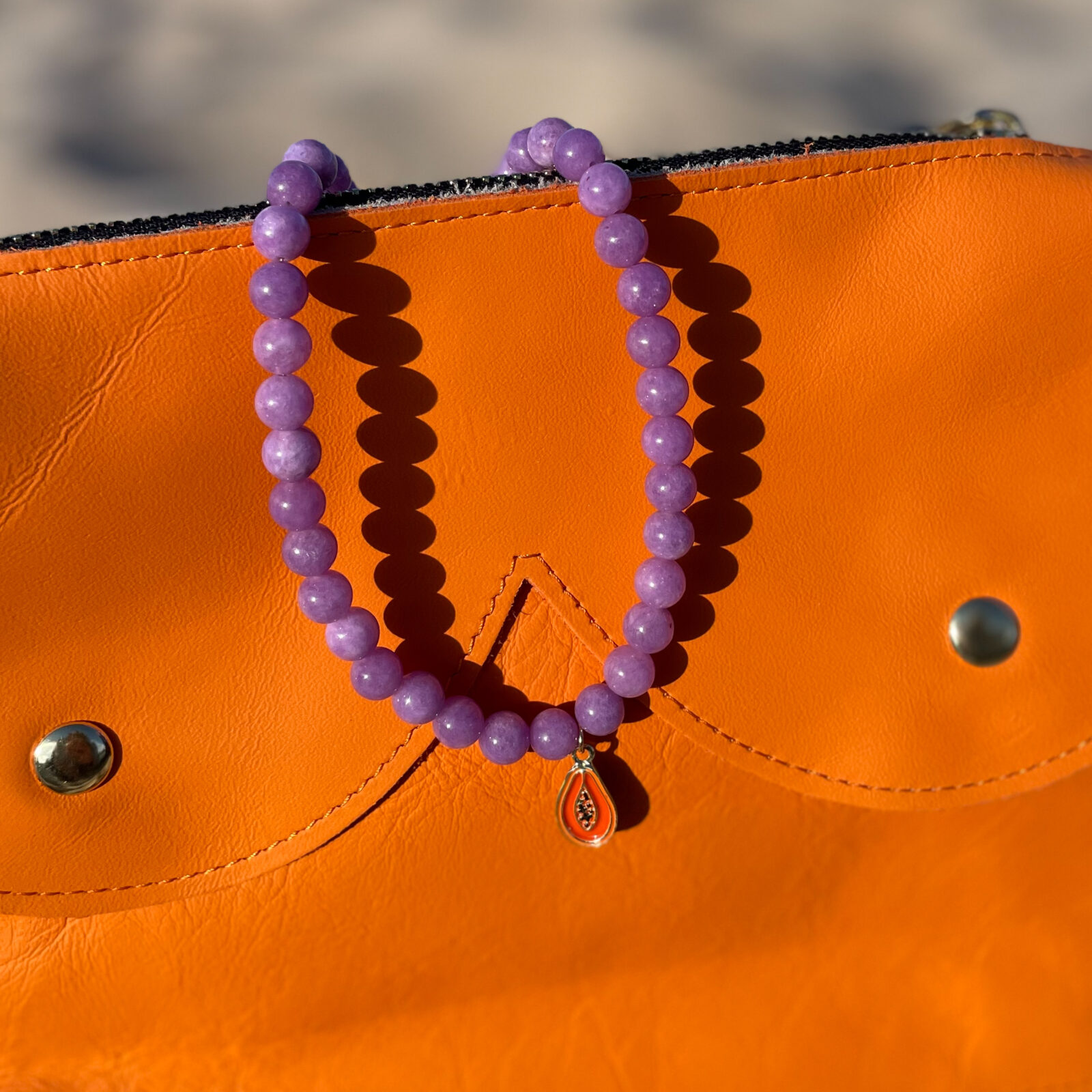 Przedstawiamy nasz choker z głęboko fioletowego Jadeitu, ozdobiony nietuzinkową zawieszką w kształcie papai. To biżuteria, która zachwyca oryginalnością i przemycaną symboliką. Fioletowy Jadeit to kamień intuicji, duchowego spokoju i ochrony – wspiera wewnętrzne wyciszenie, rozwój osobisty oraz pomaga odnaleźć równowagę w codziennym chaosie. Zawieszka papai dodaje egzotycznego akcentu i przypomina, że w życiu warto pozwalać sobie na odrobinę słodyczy i luzu. To idealny choker dla osób, które cenią połączenie harmonii, wyjątkowego stylu i delikatnej symboliki zakorzenionej w naturze.