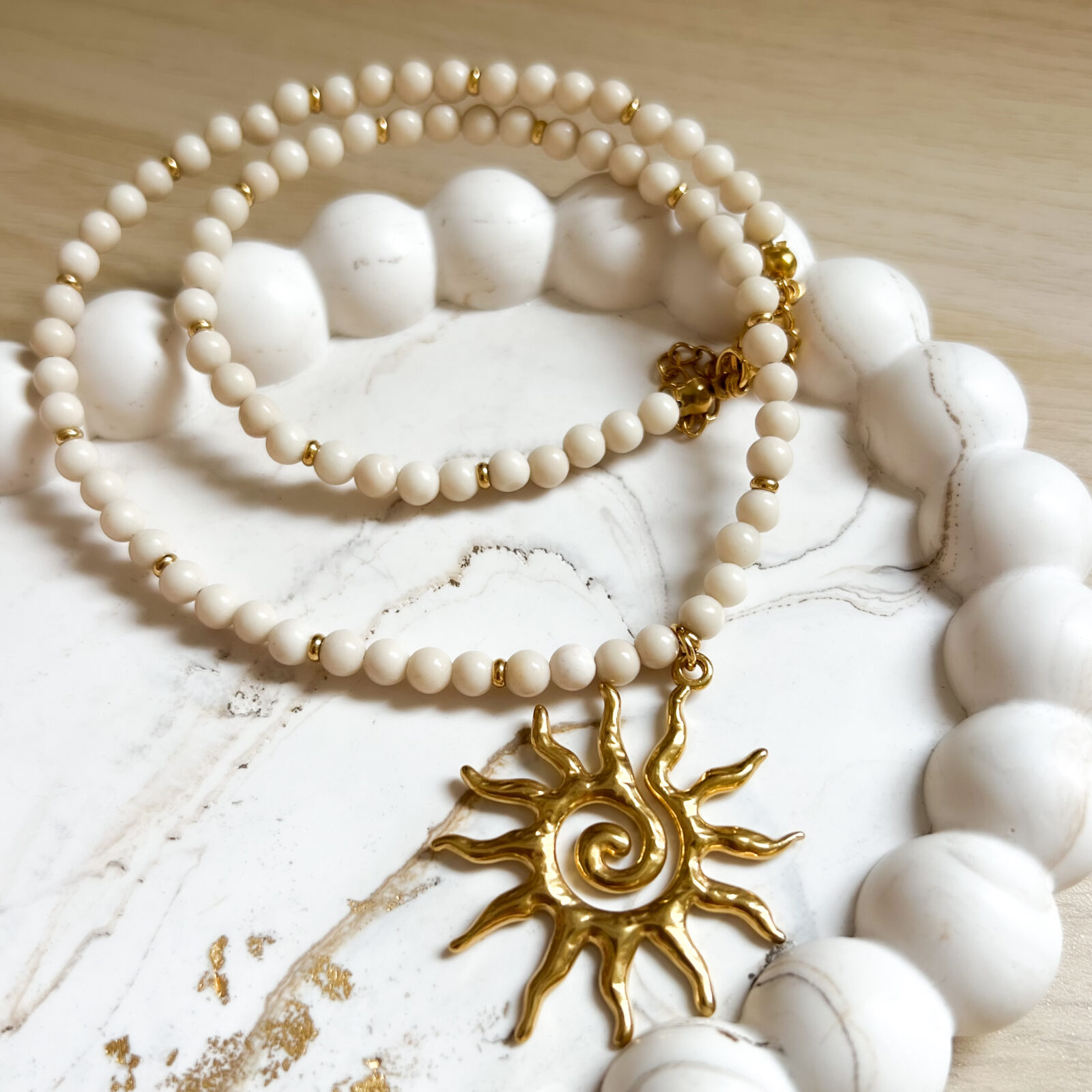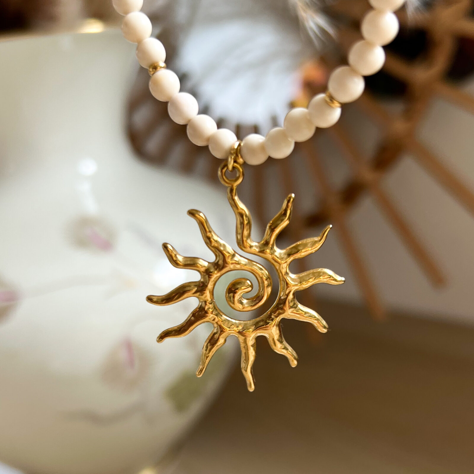 Naszyjnik Choker z Kamieniem Rzecznym i zawieszką Słońca