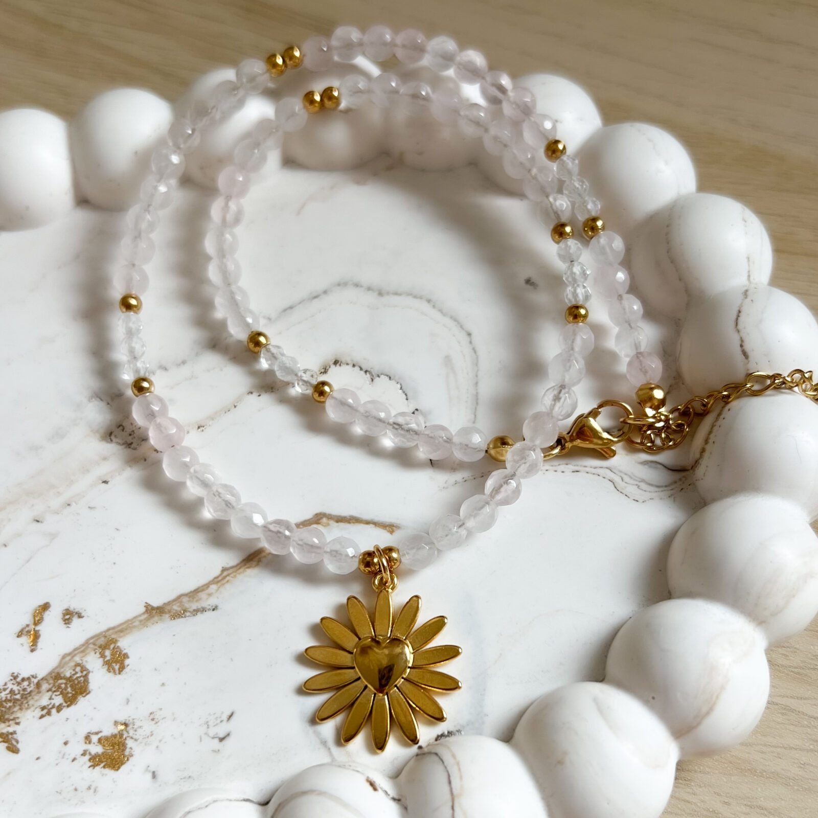 Naszyjnik Choker z Kwarcem Różowym, Kryształem Górskim z LIMITOWANĄ zawieszką