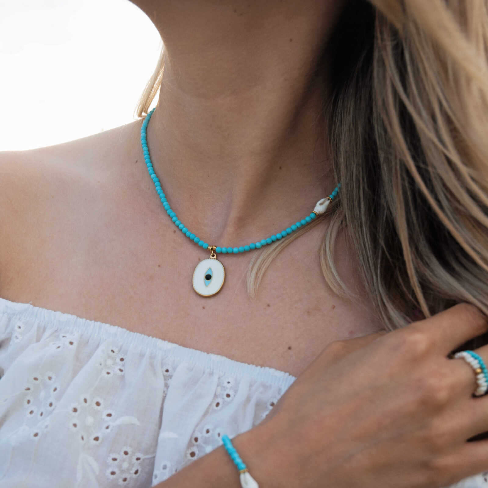 Pamiętaj, że kamienie są naturalne, dlatego ich kolory i wzory mogą się delikatnie różnić, co czyni każdy naszyjnik unikalnym.