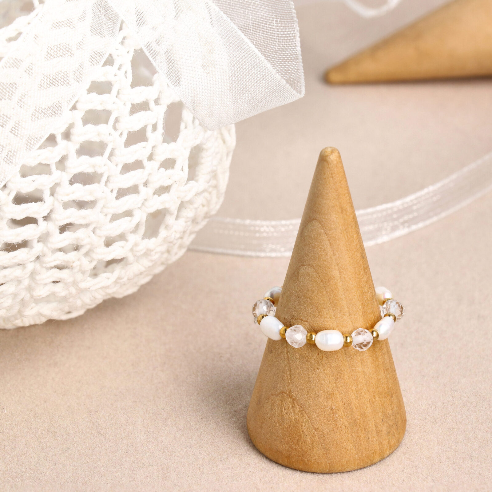 Pierścionki wykonane są na elastycznej żyłce, w związku z tym z łatwością dopasowują się do palca.