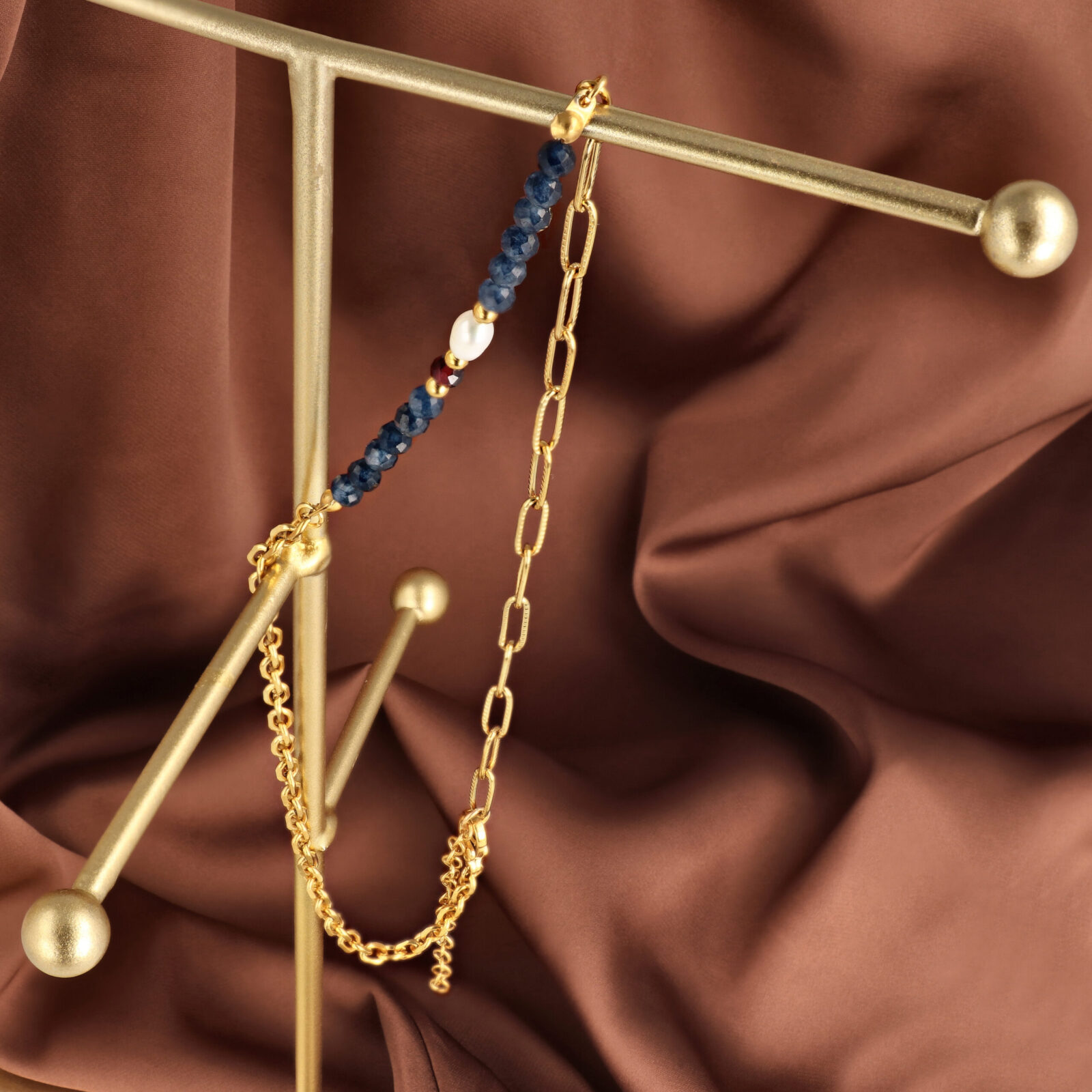 Nasze produkty tworzymy ręcznie z naturalnych kamieni: szlachetnych, półszlachetnych i mineralnych, a elementy wykończenia wykonane są z wysokiej jakości pozłacanej stali szlachetnej, która jest hipoalergiczna, odporna na ścieranie i zachowuje swój kolor w trakcie użytkowania.