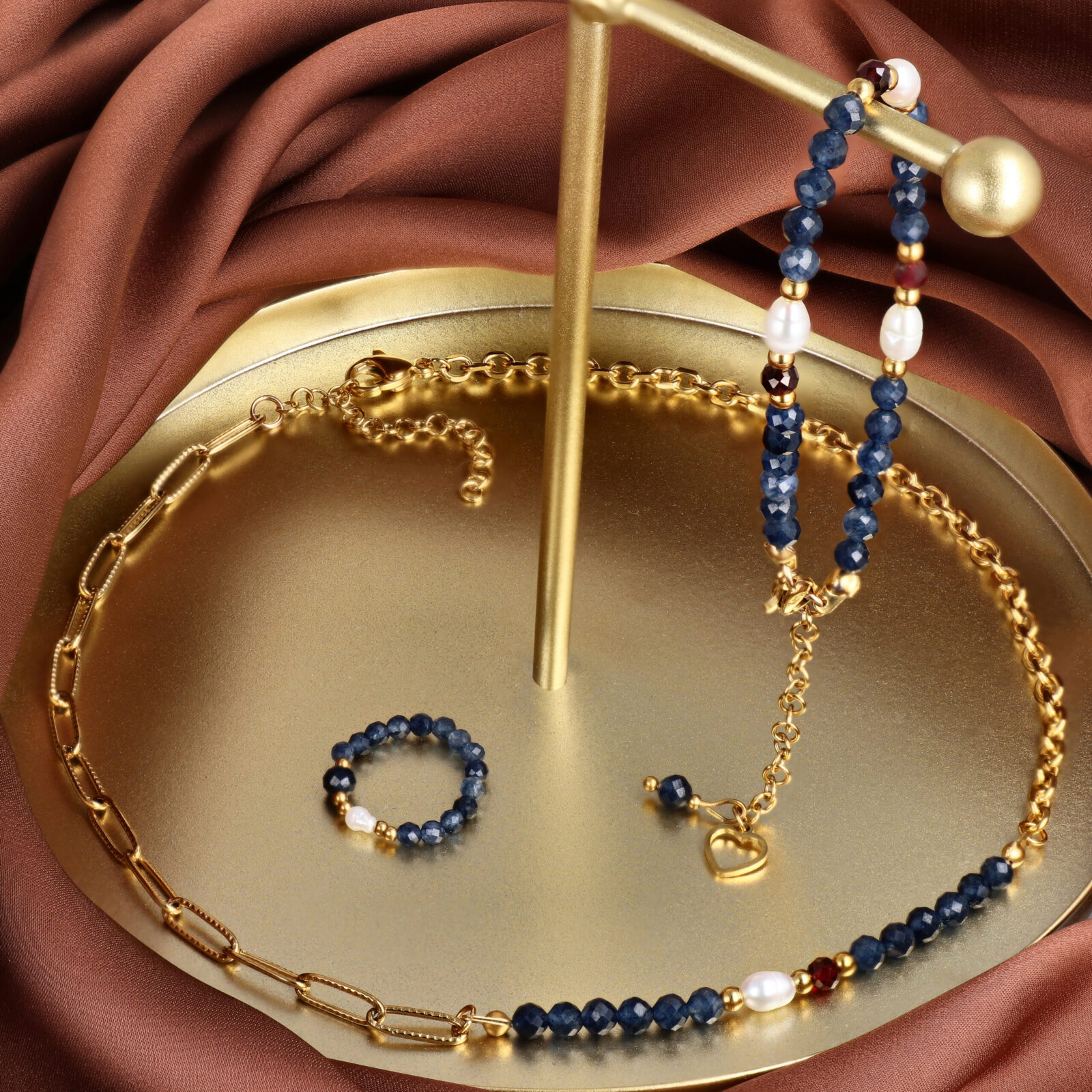 Zestaw składający się z pierścionka, bransoletki, naszyjnika z kamieni: