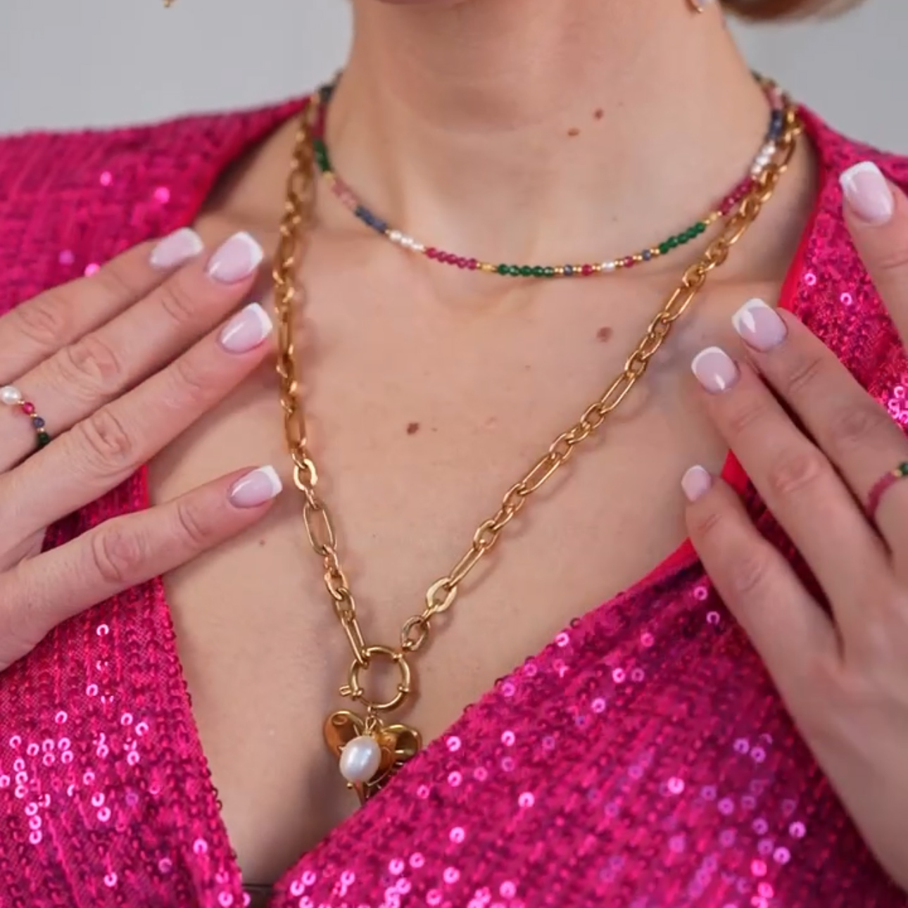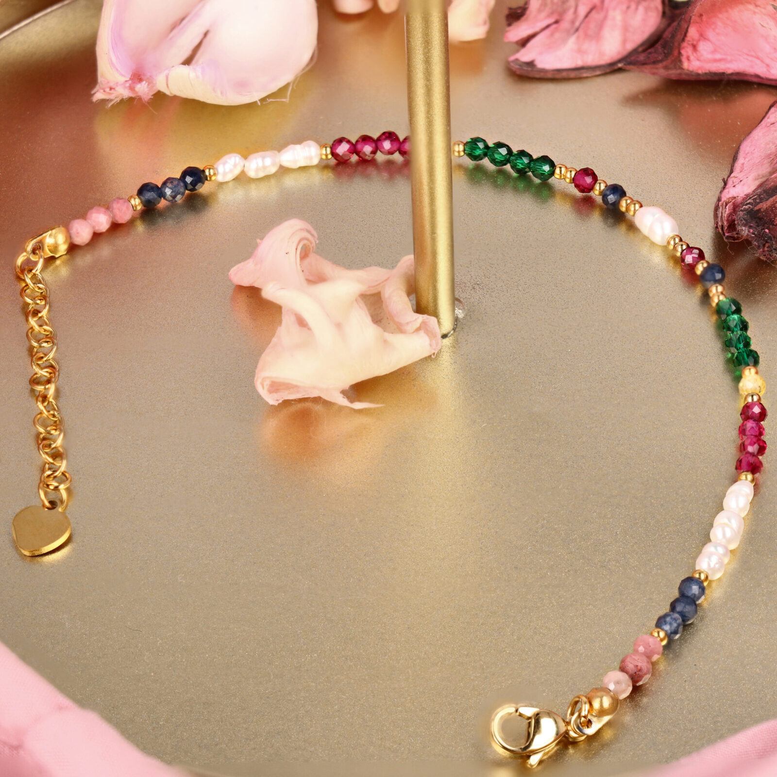 Nasze produkty tworzymy ręcznie z naturalnych kamieni: szlachetnych, półszlachetnych i mineralnych, a elementy wykończenia wykonane są z wysokiej jakości pozłacanej stali szlachetnej, która jest hipoalergiczna, odporna na ścieranie i zachowuje swój kolor w trakcie użytkowania.