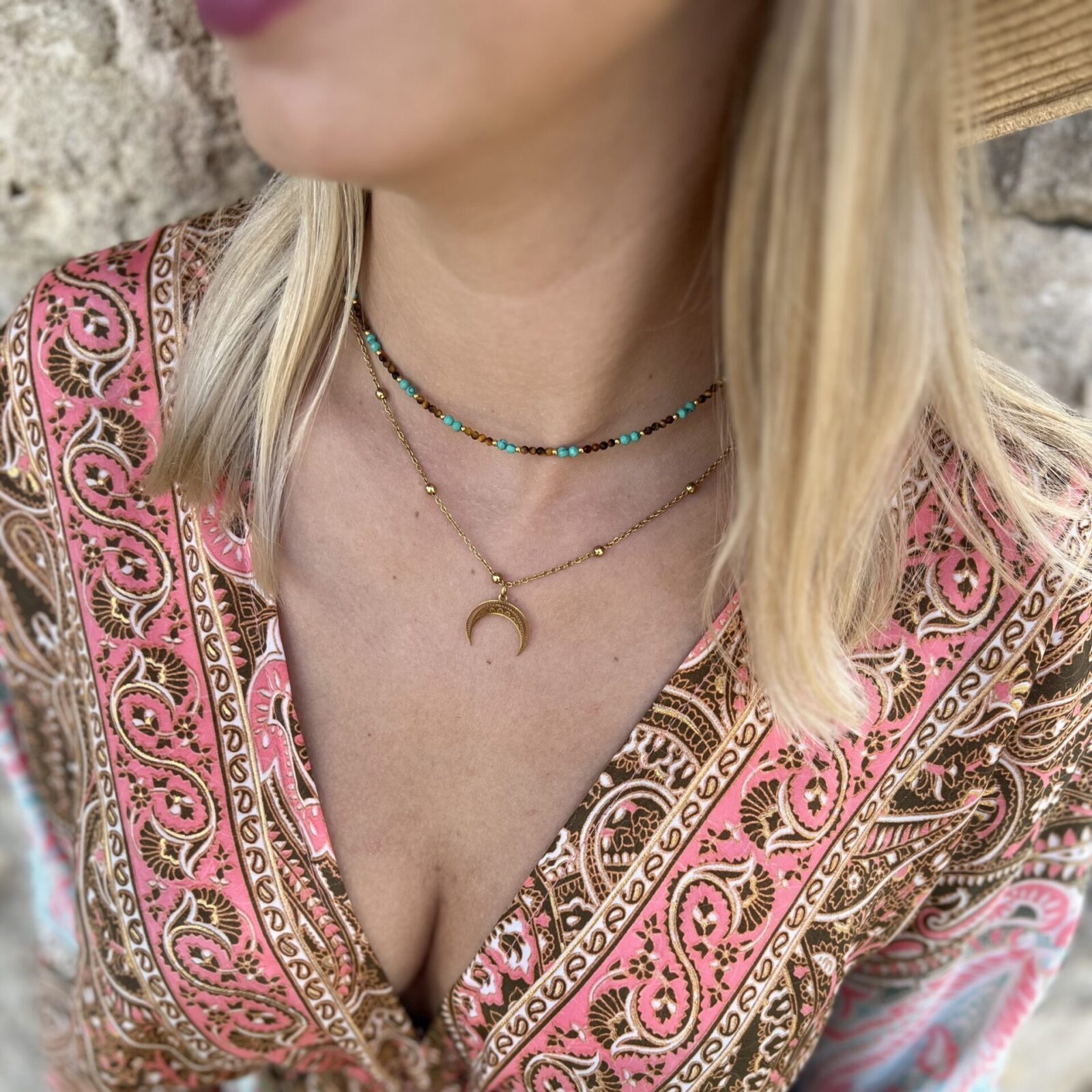 Pamiętaj, że kamienie są naturalne, dlatego ich kolory i wzory mogą się delikatnie różnić, co czyni każdy naszyjnik unikalnym.