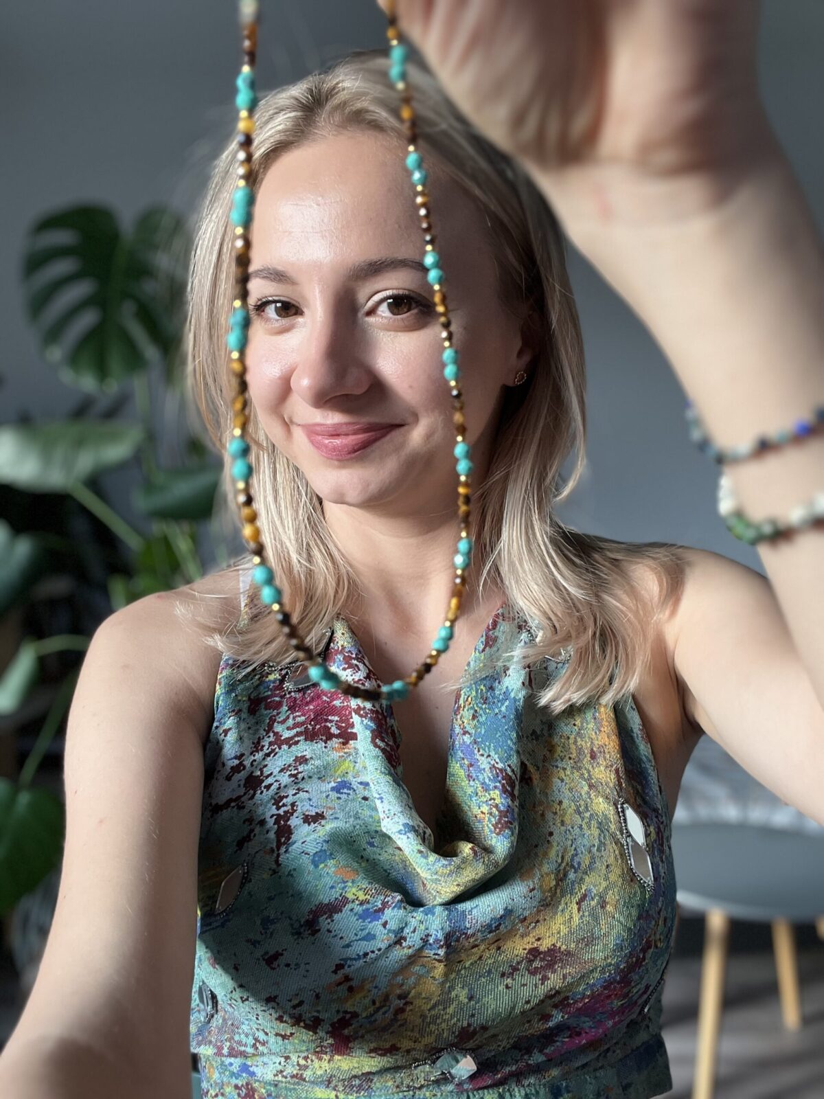 Pamiętaj, że kamienie są naturalne, dlatego ich kolory i wzory mogą się delikatnie różnić, co czyni każdy naszyjnik unikalnym.