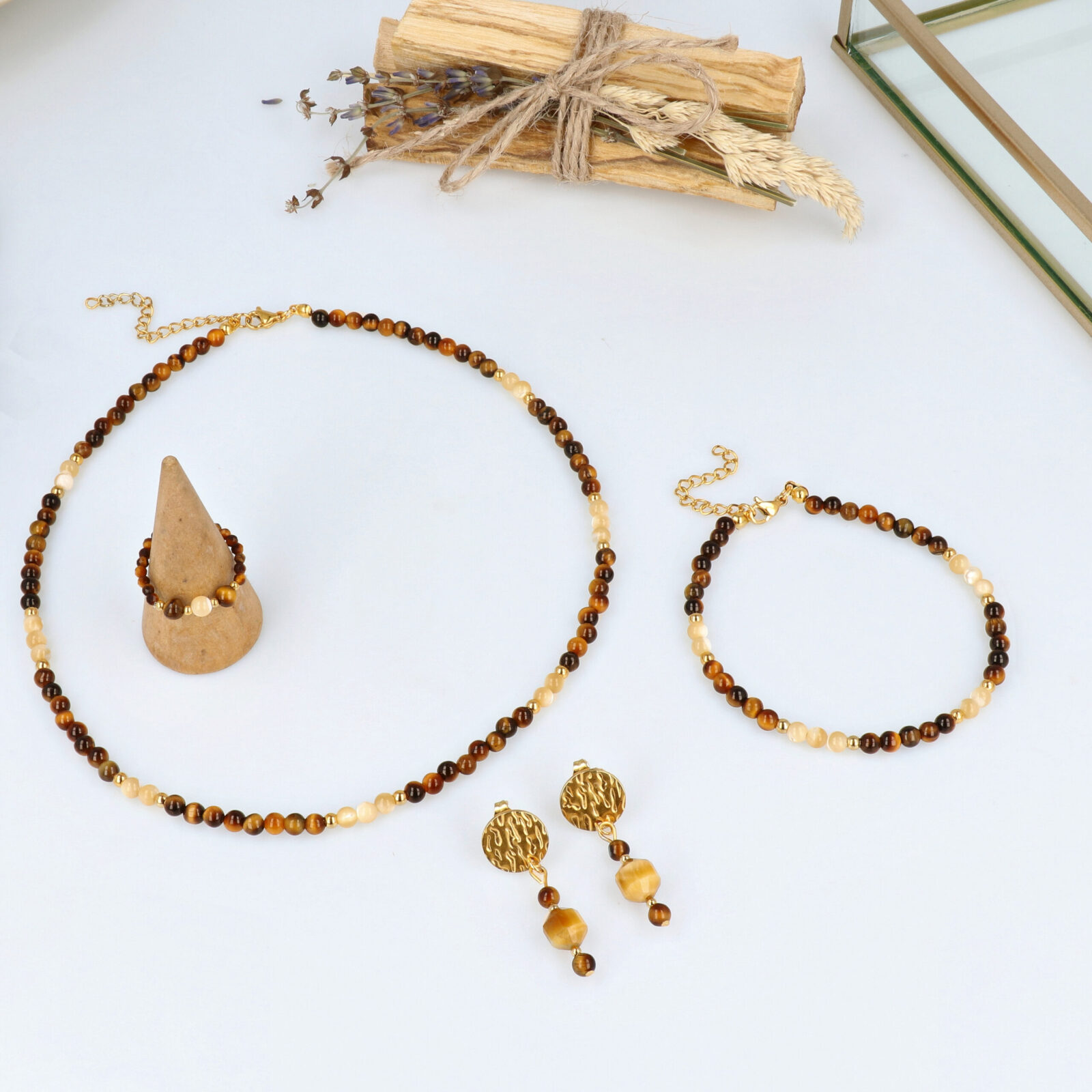 Pamiętaj, że kamienie są naturalne, dlatego ich kolory i wzory mogą się delikatnie różnić, co czyni każdy zestaw unikalny.