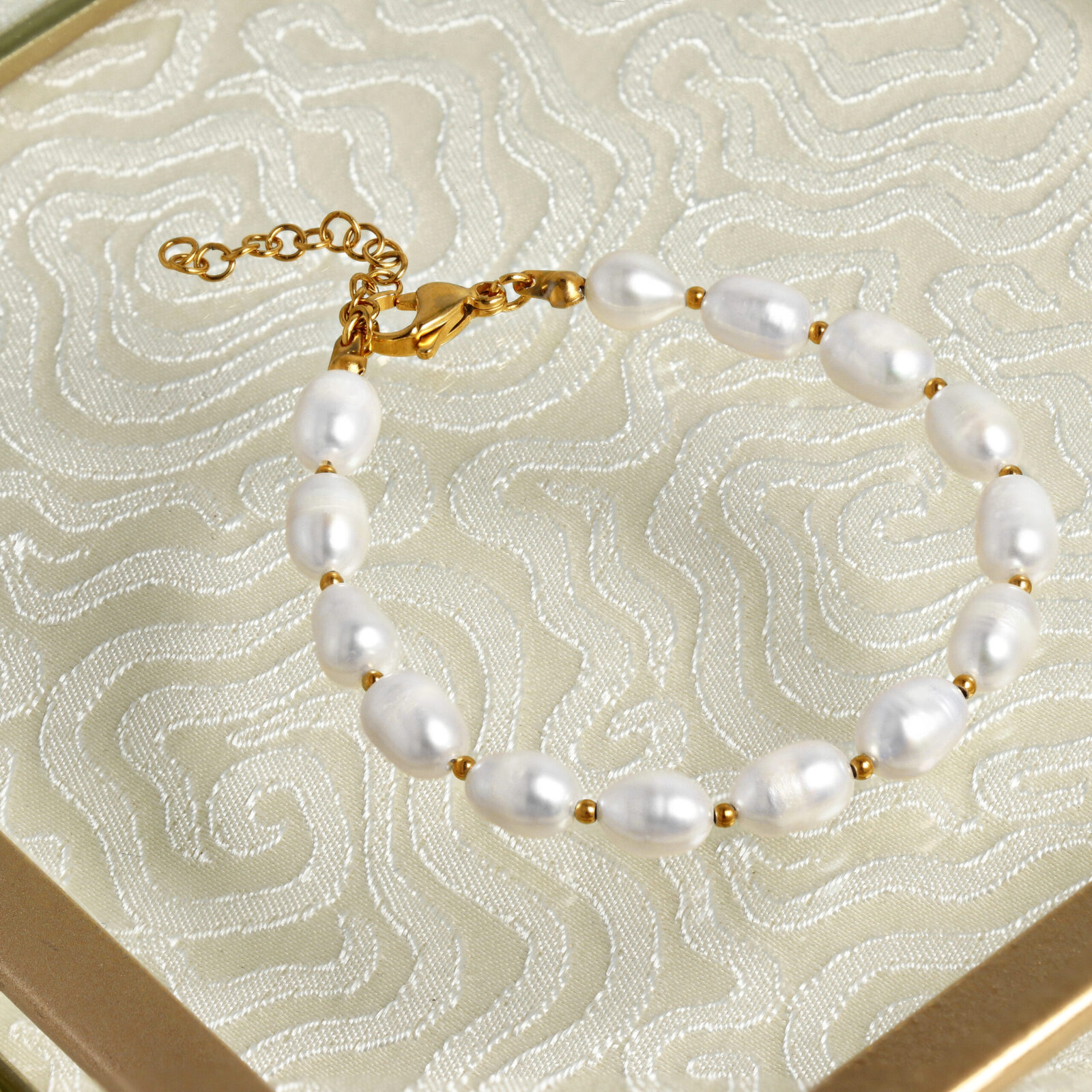 Delikatny i elegancki zestaw biżuterii, który urzeka subtelnością i ponadczasowym stylem. Naszyjnik oraz bransoletka zostały wykonane z klasycznych białych pereł, które przeplatają złote kuleczki, dodając całości luksusowego blasku. Bransoletka jest wygodna dzięki elastycznej gumce, idealnie dopasowując się do nadgarstka, co czyni ją praktycznym i stylowym dodatkiem. Ten zestaw to idealny wybór dla miłośniczek subtelnej elegancji, które szukają biżuterii pasującej zarówno na wyjątkowe okazje, jak i do codziennych stylizacji.