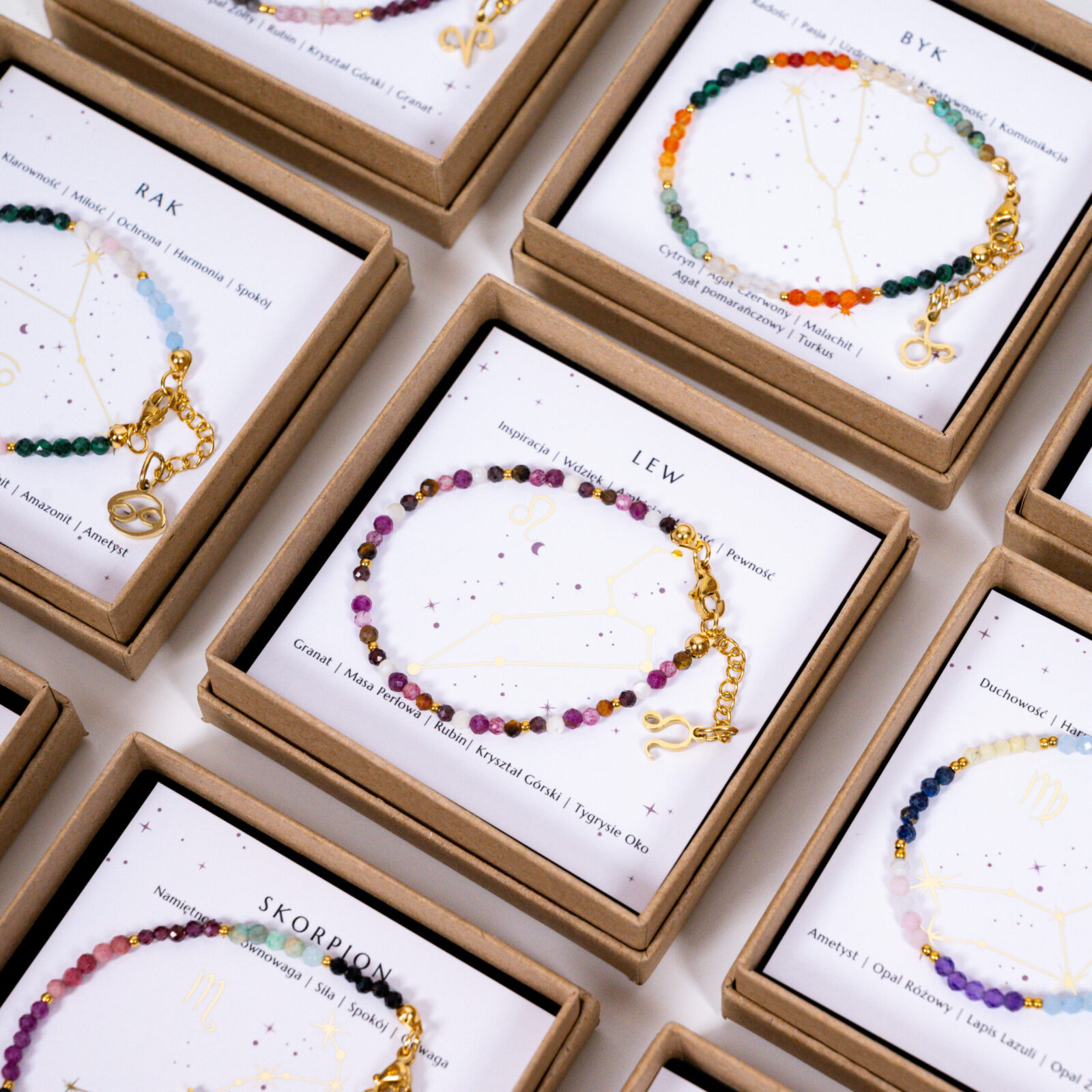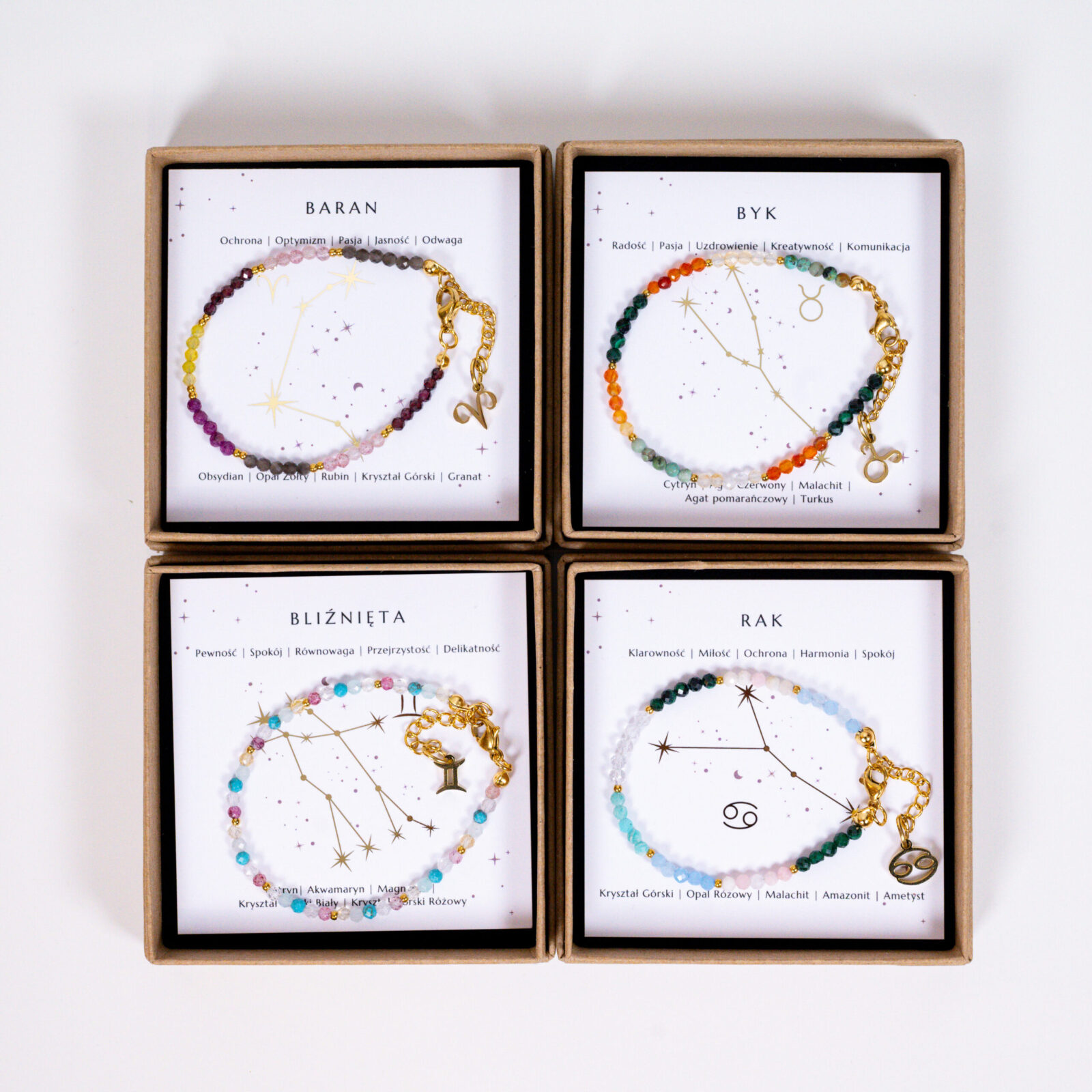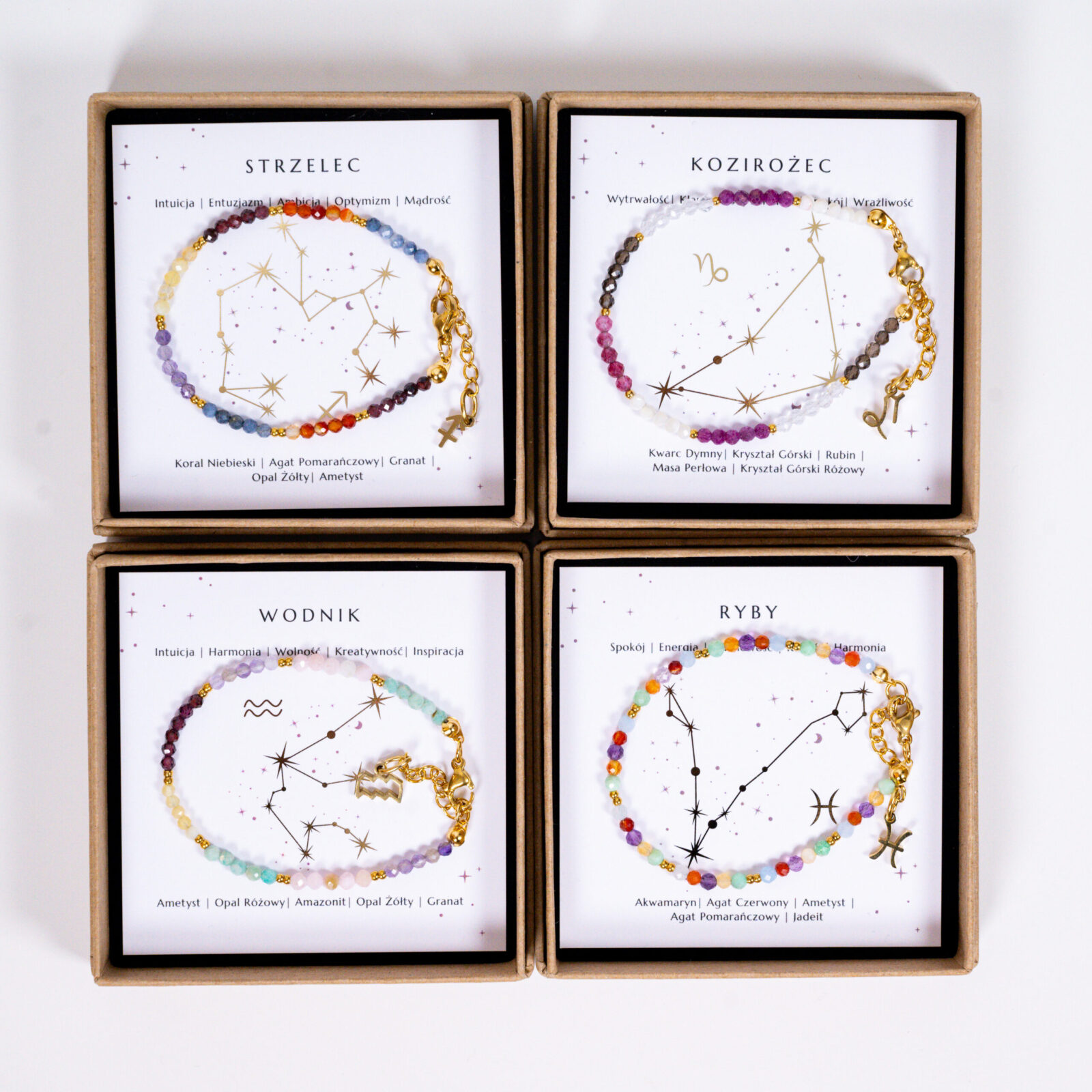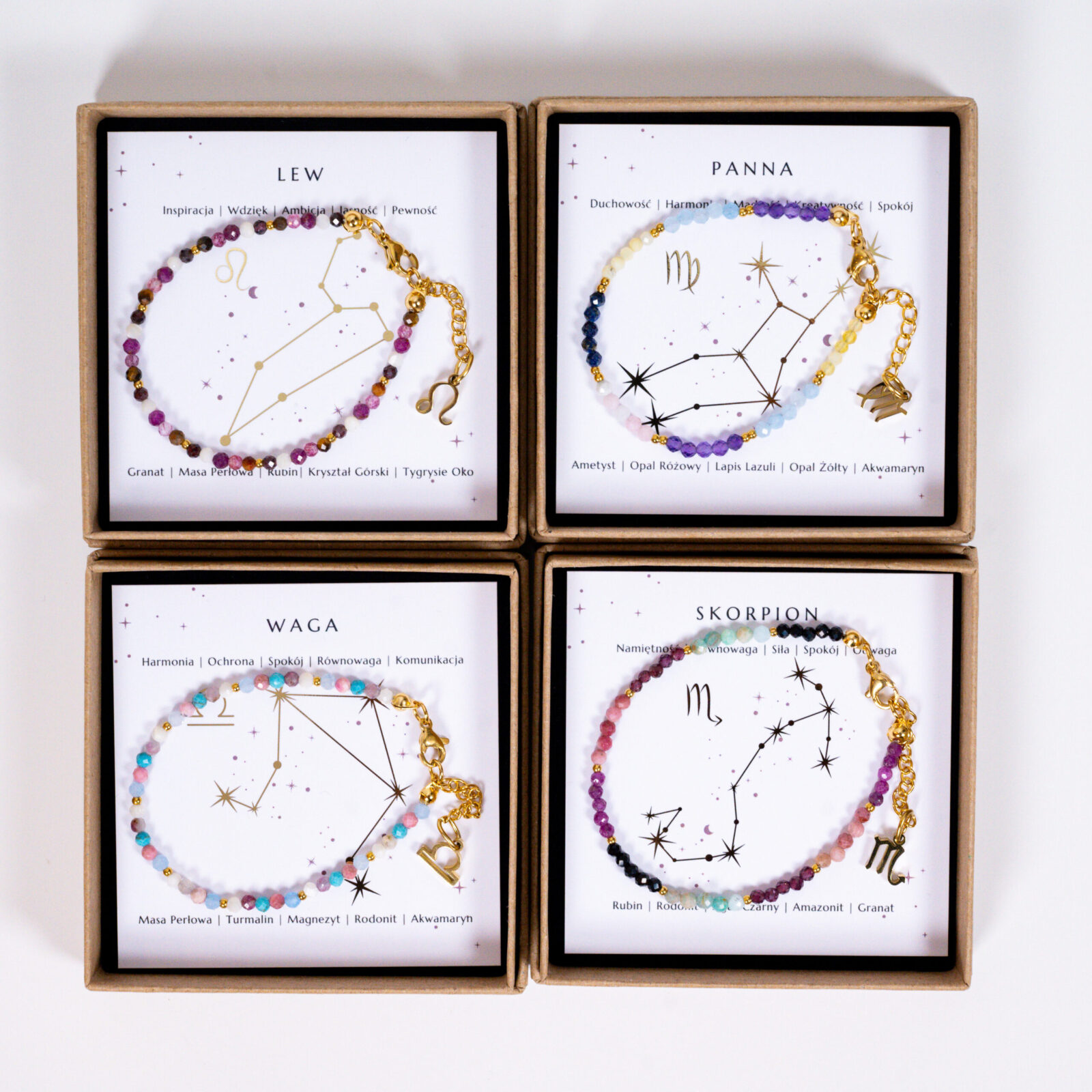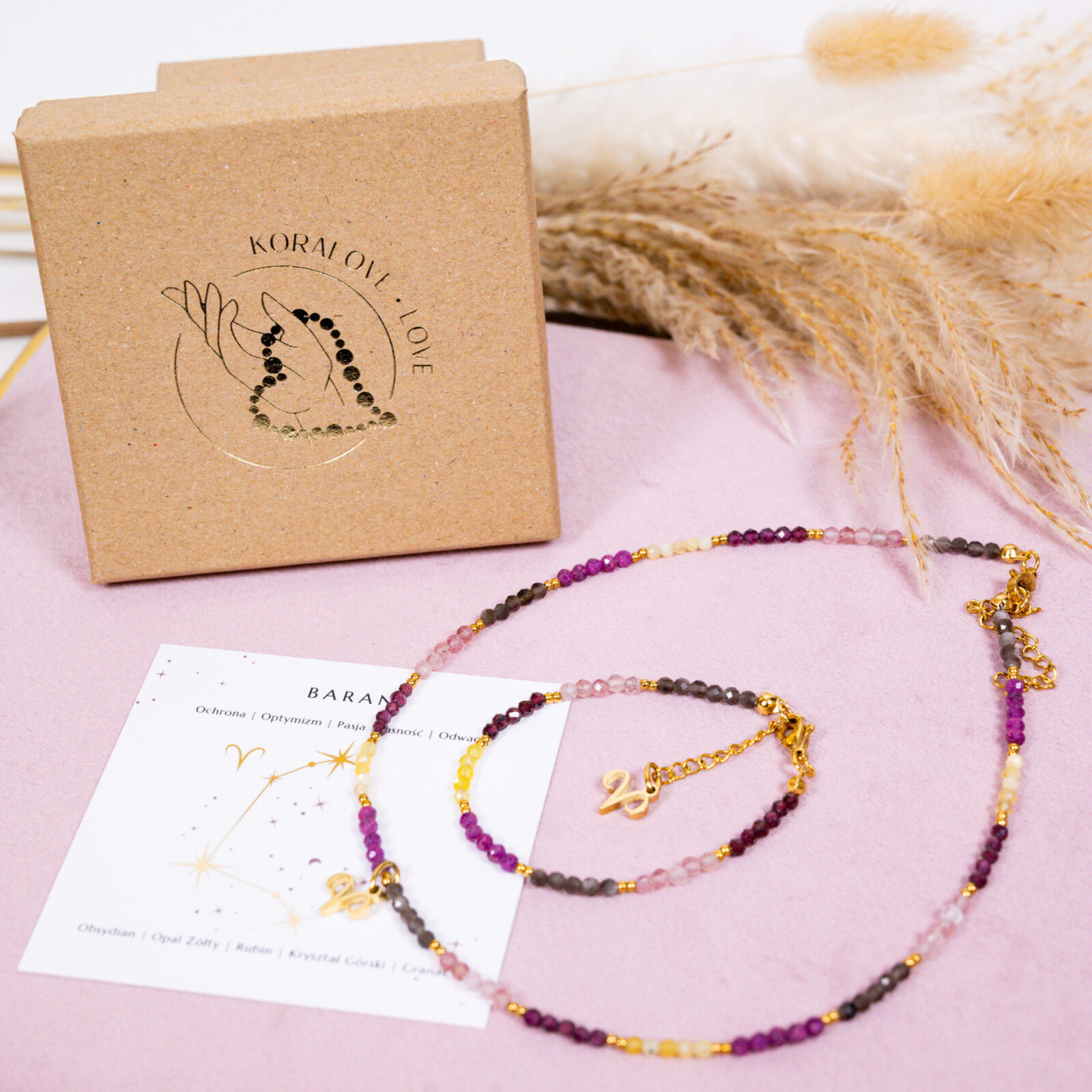 Odkryj wyjątkowy zestaw biżuterii stworzony z myślą o Twoim znaku zodiaku. Każdy element został wykonany z naturalnych kamieni starannie dopasowanych do energii poszczególnych znaków. Zestaw składa się z: